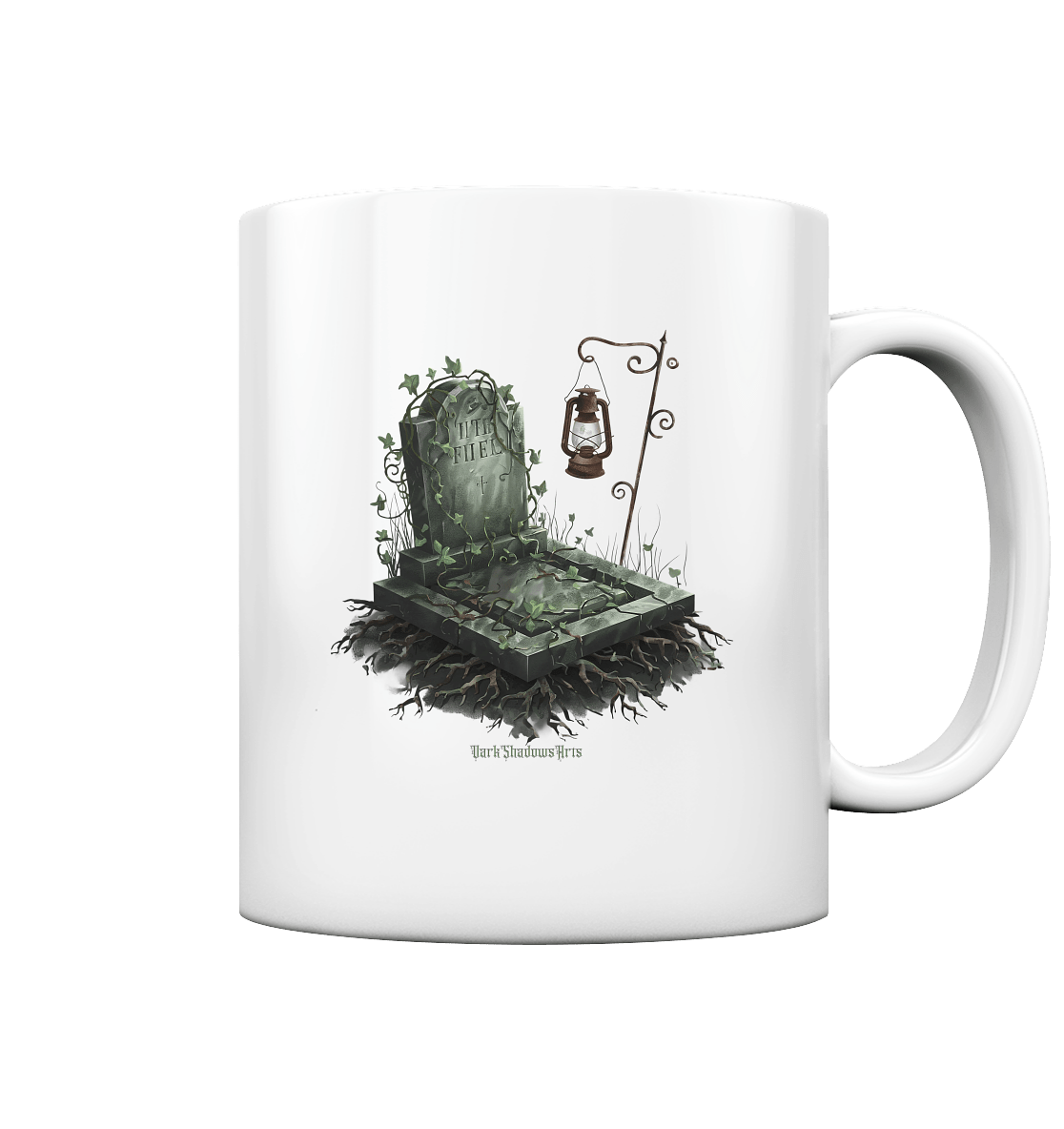 Mystische Grabstein - Illustration mit Laterne und Efeu - Tasse glossy | Trinkgefäße | Dark Shadows Arts