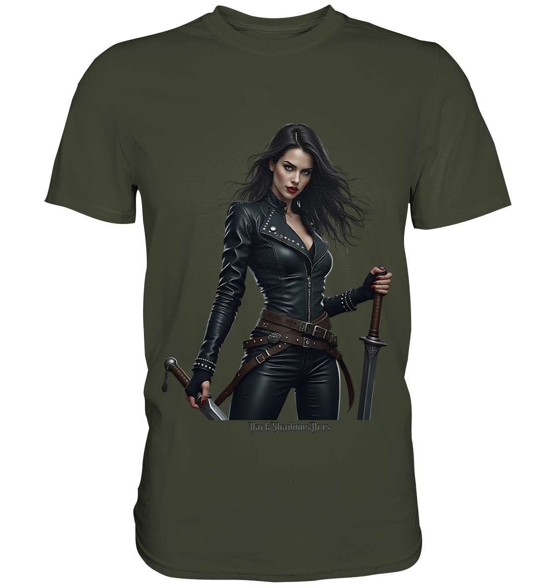 Dual Wielding Elegance Leather Clad Warrior - Premium Shirt