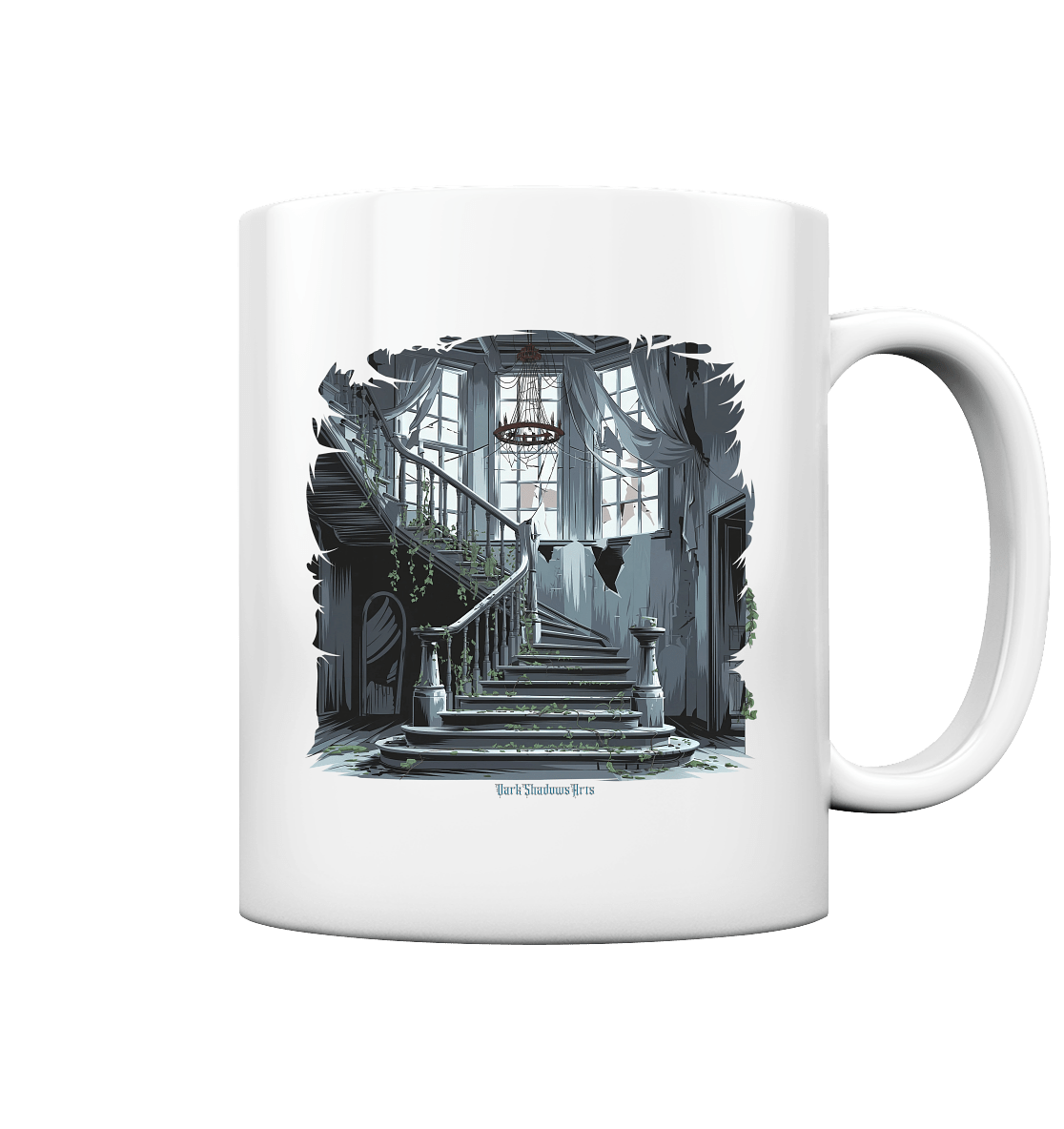 Dieses Design, "Verfallene Eleganz – Verlorener Glanz," ist eine Hommage an die geheimnisvolle Schönheit verlassener Orte. Die imposante Treppe, die zerrissenen Vorhänge und die düsteren Schatten schaffen eine fesselnde Atmosphäre, die den Betrachter in die Geschichte dieses vergessenen Ortes eintauchen lässt. Perfekt für alle, die Lost Places und die Ästhetik des Verfalls lieben. Dieses Design passt zu jedem, der die mystische und düstere Kunst schätzt.